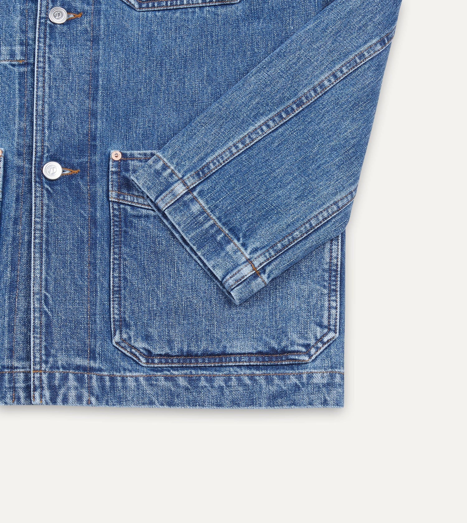 Casual Style Bleach Wash Selvedge Denim Five-Pocket Chore Jacket 55190570