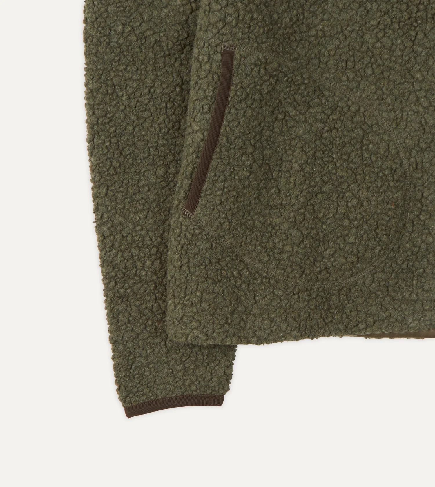 Casual Style Green Boucle Wool Zip Fleece Jacket 55190476