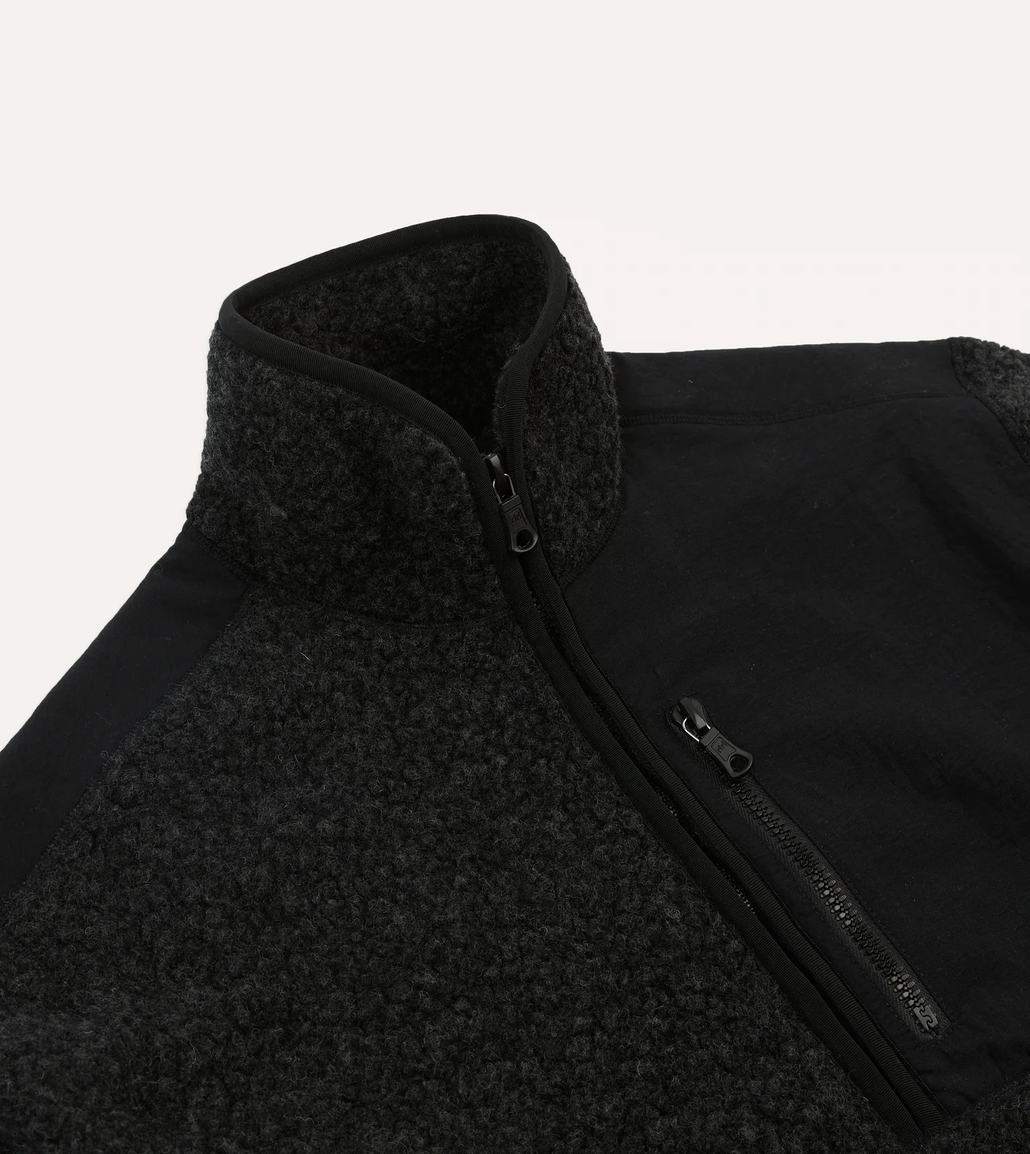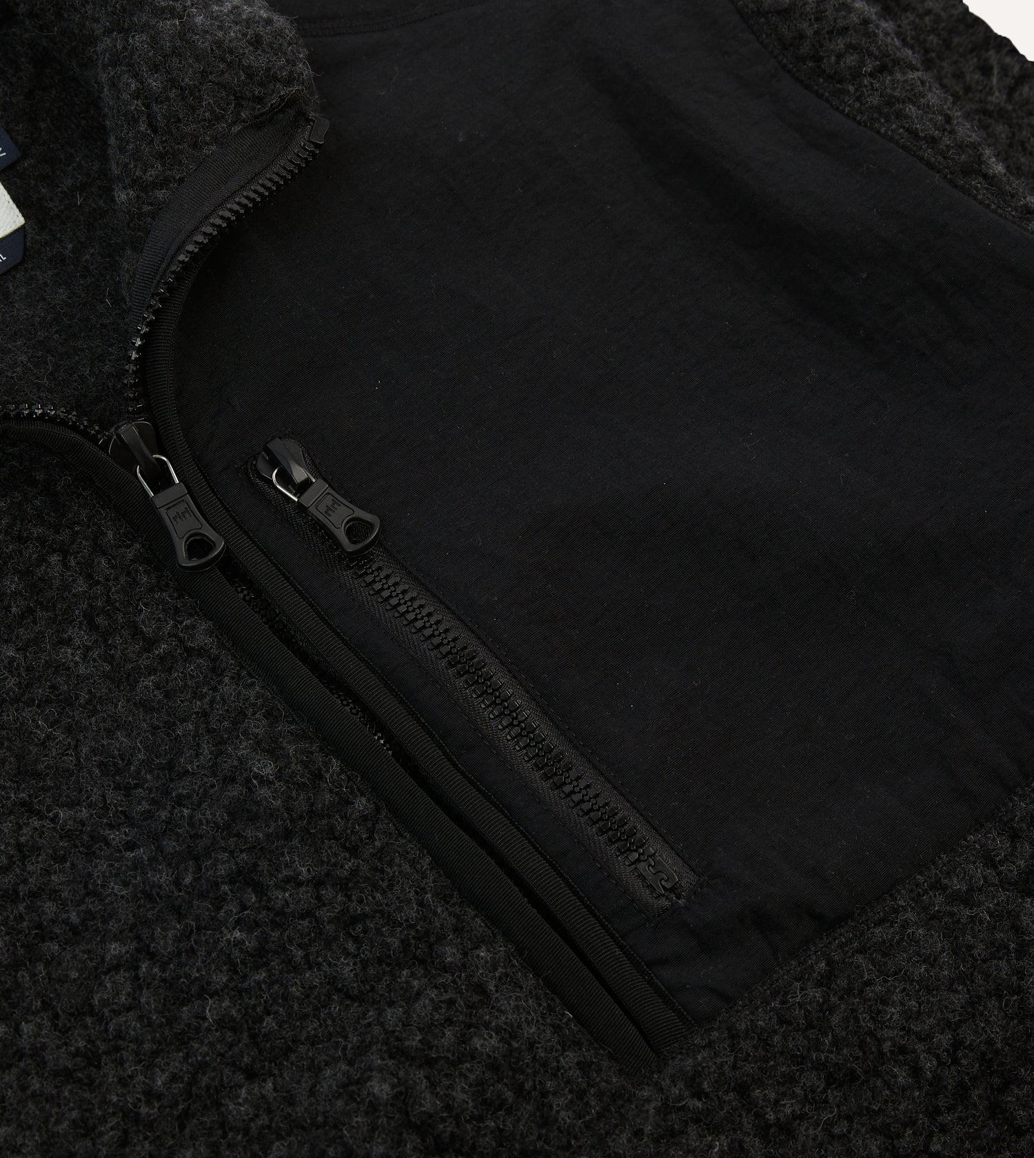 Casual Style Grey Boucle Wool Half-Zip Fleece Jacket 55190492