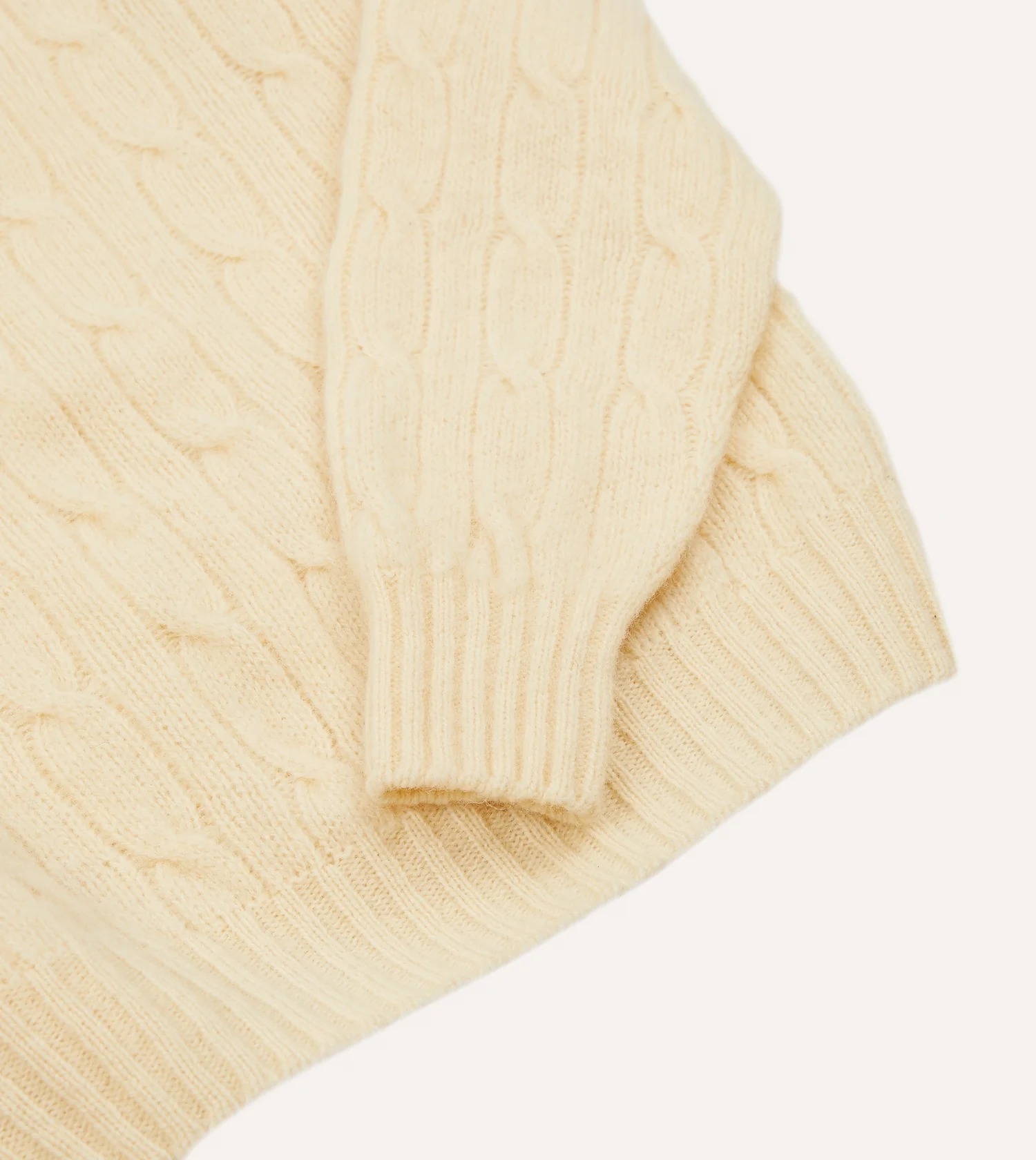 Ecru Brushed Shetland Cable Knit Crew Neck Jumper Elegant 55190578