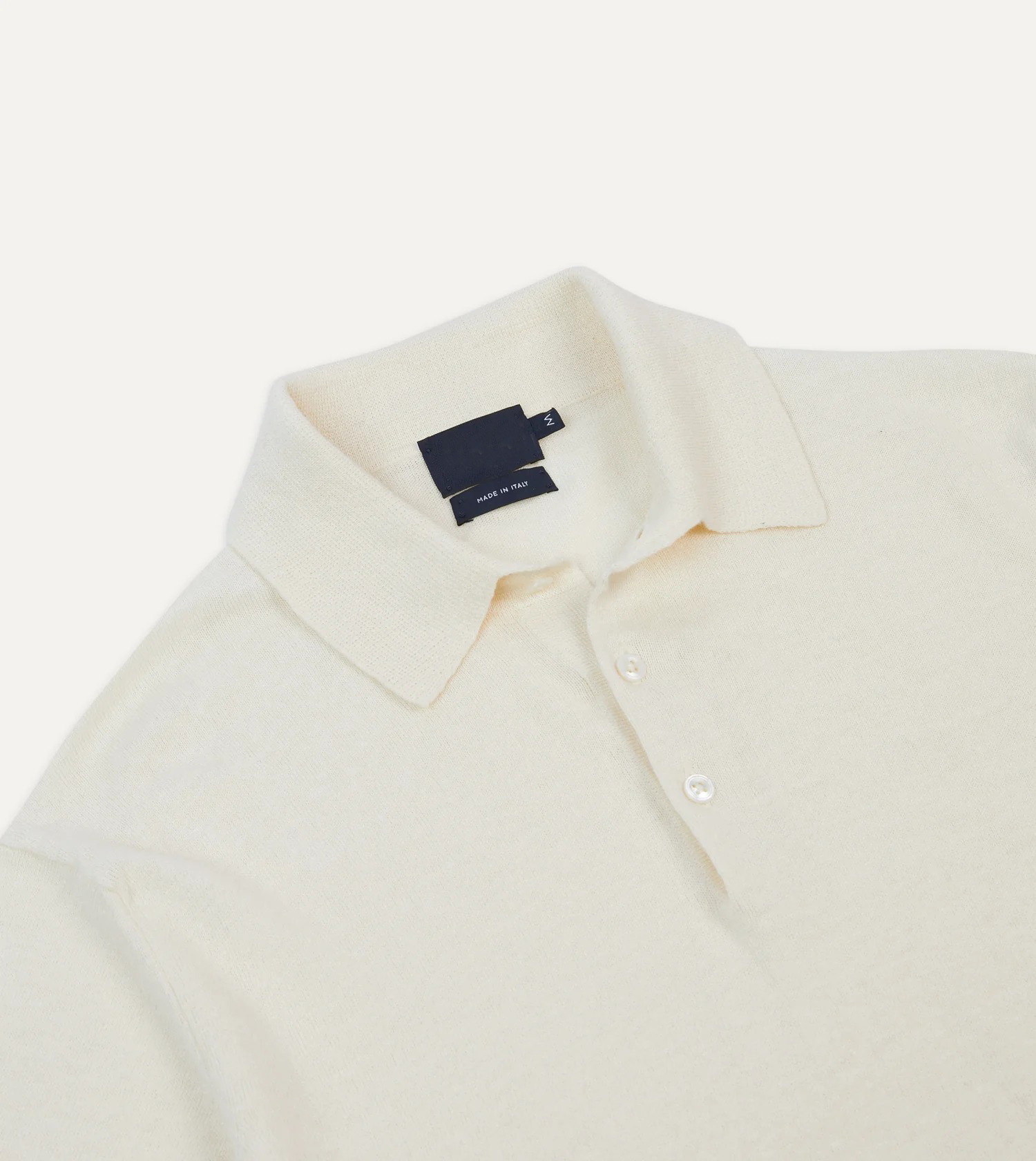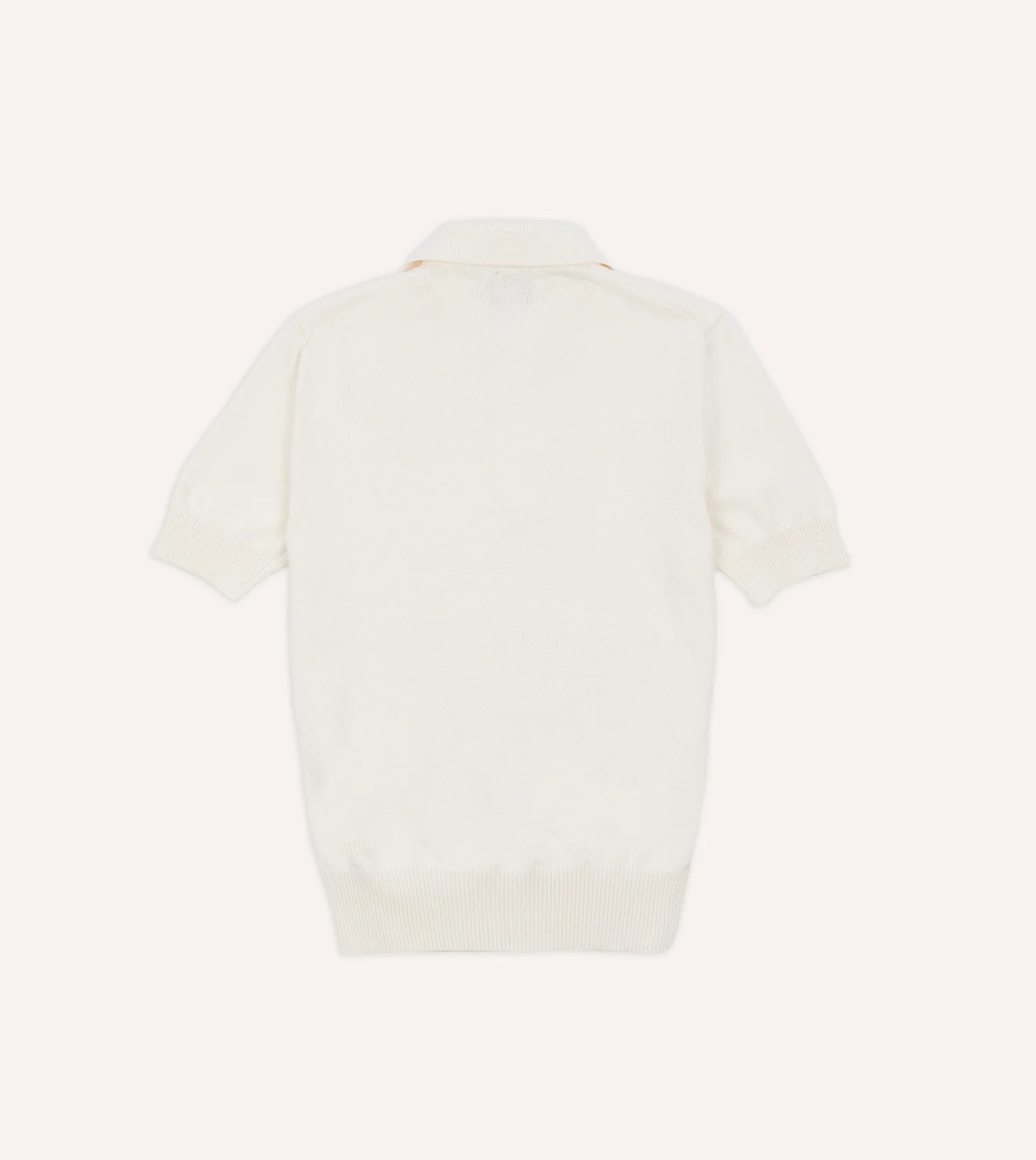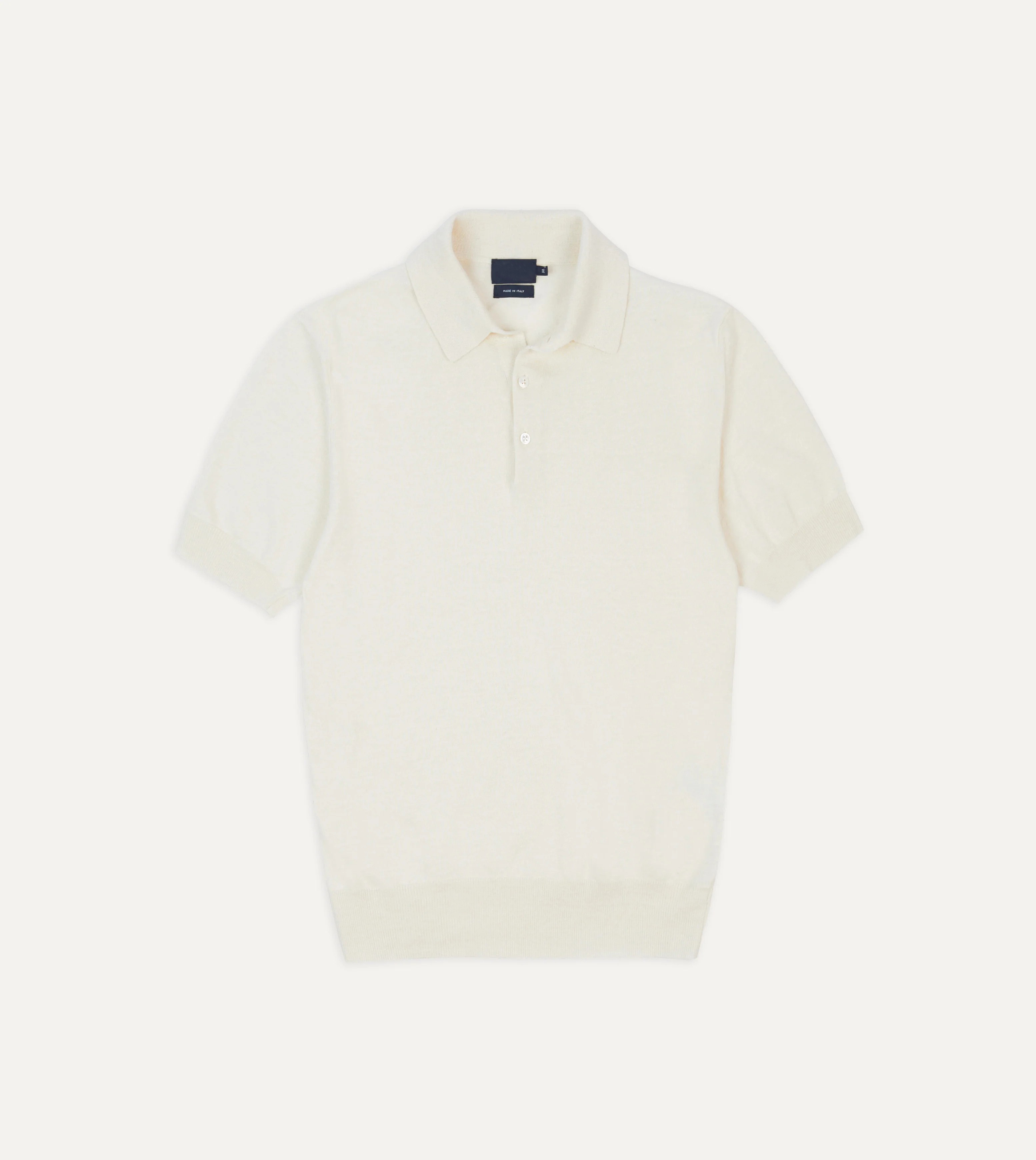 Ecru Knitted Crepe Cotton Short-Sleeve Polo Shirt Daily 55190989