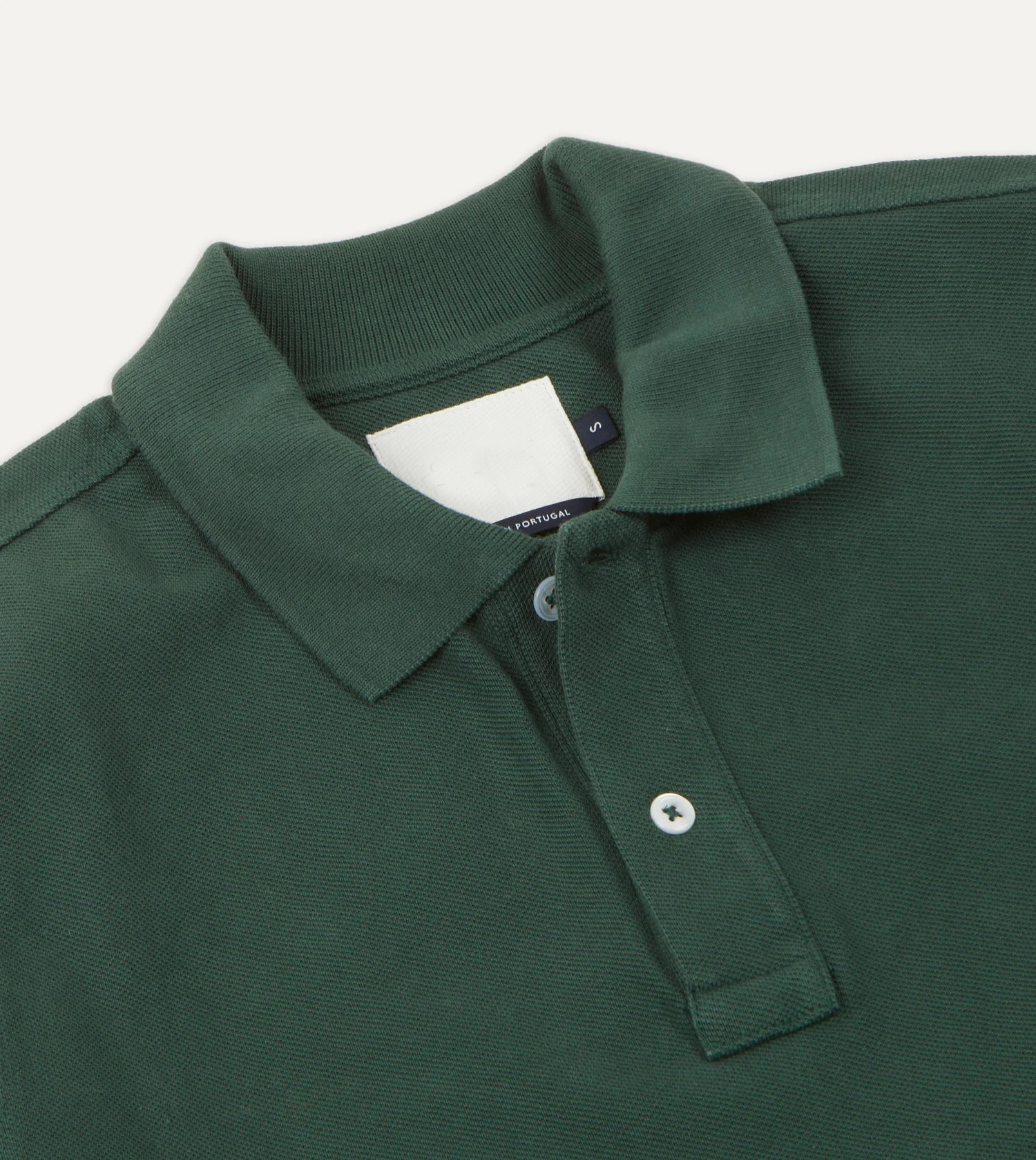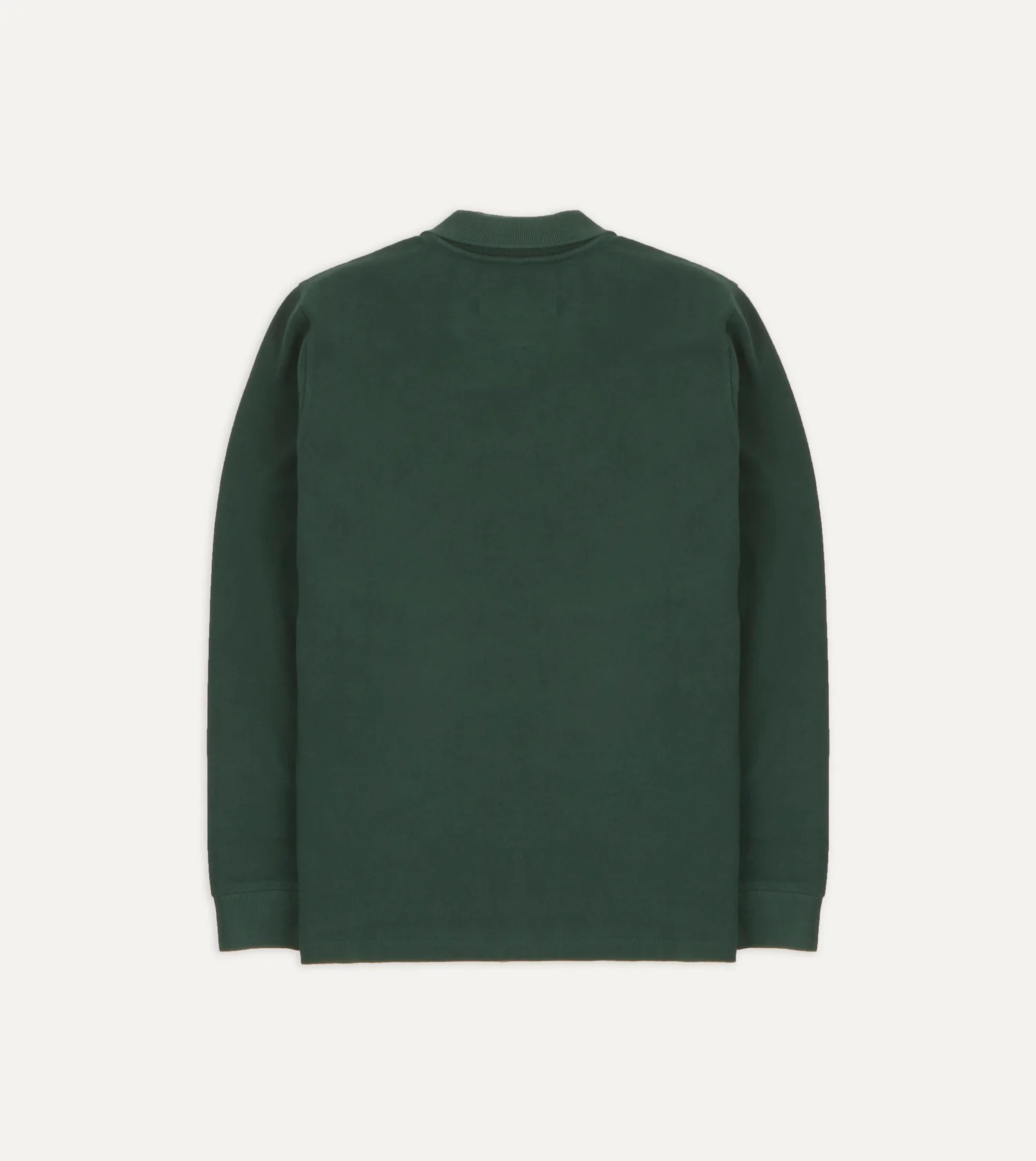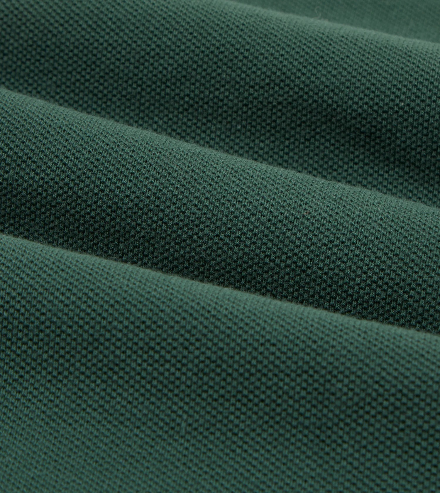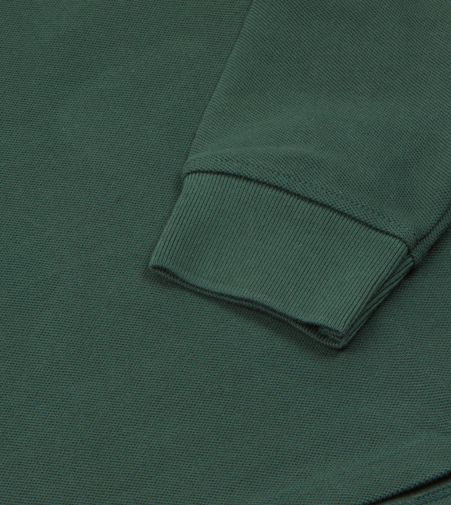 Green Pique Cotton Long-Sleeve Polo Shirt Plain 55190961