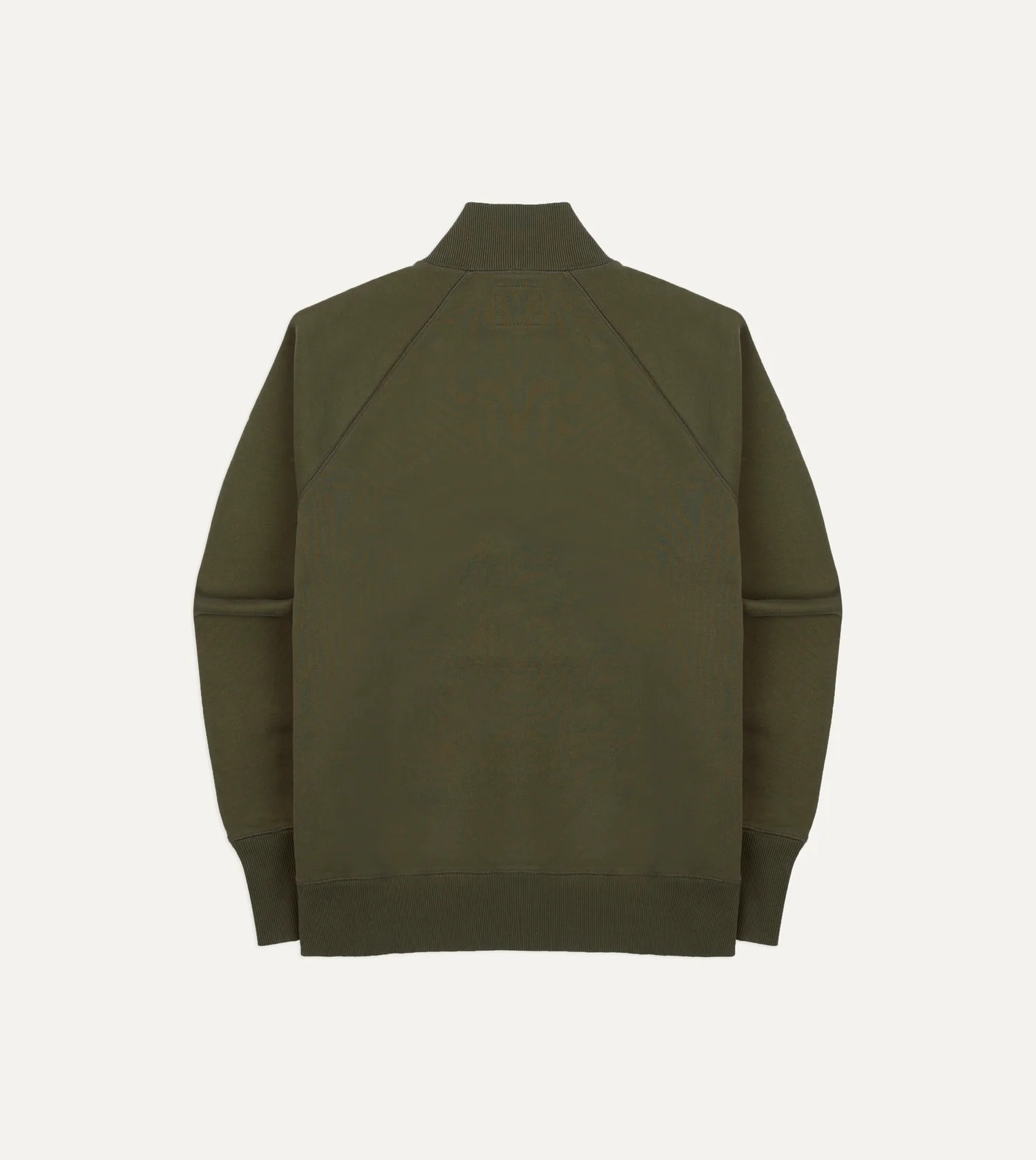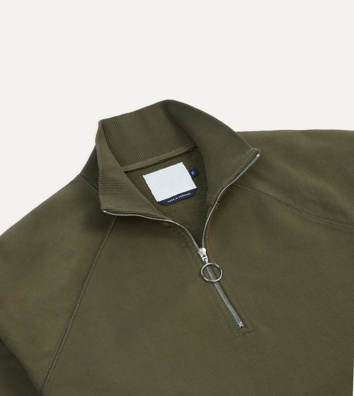 Khaki Green Cotton Quarter Zip Sweatshirt Plain 55191008