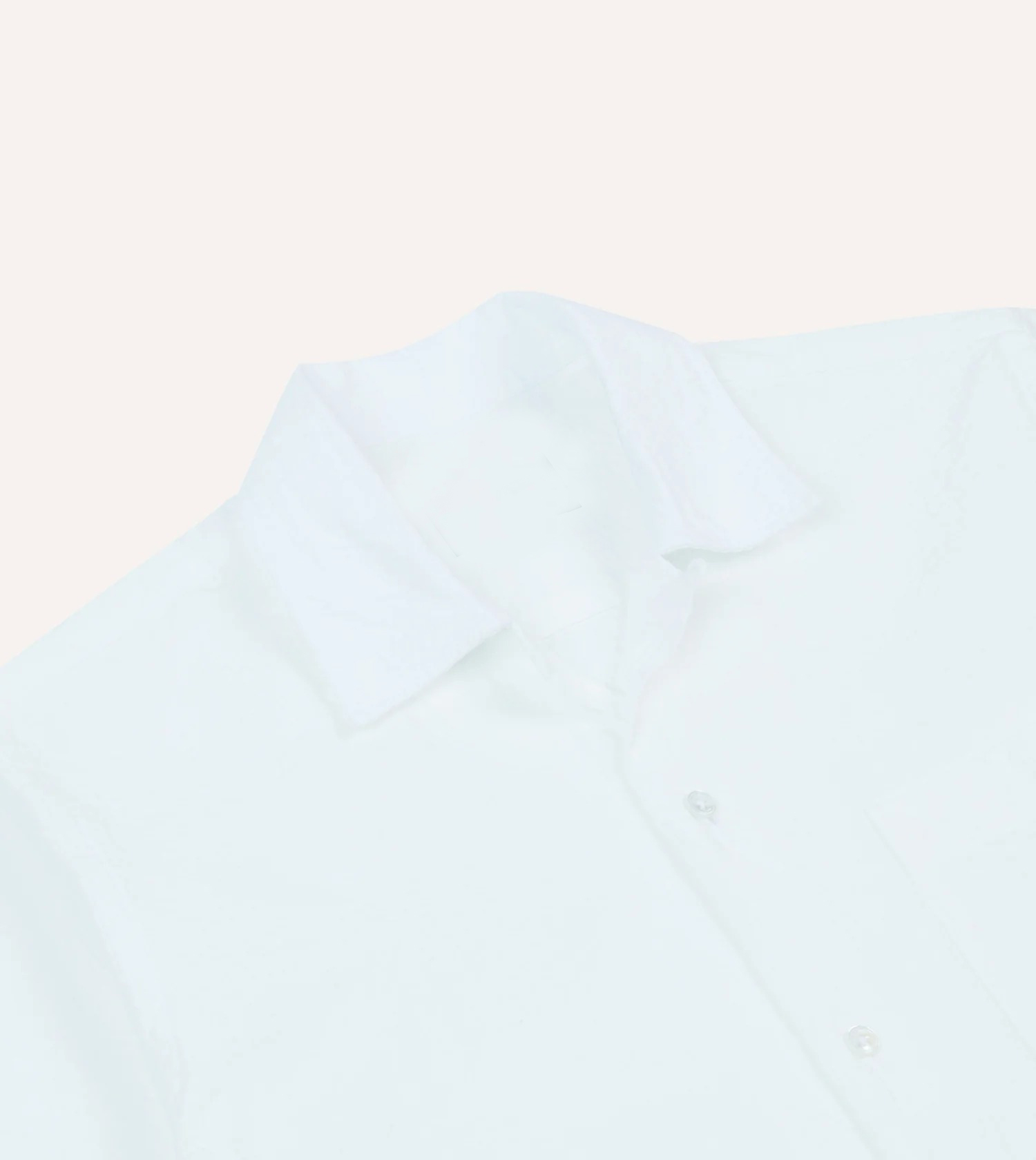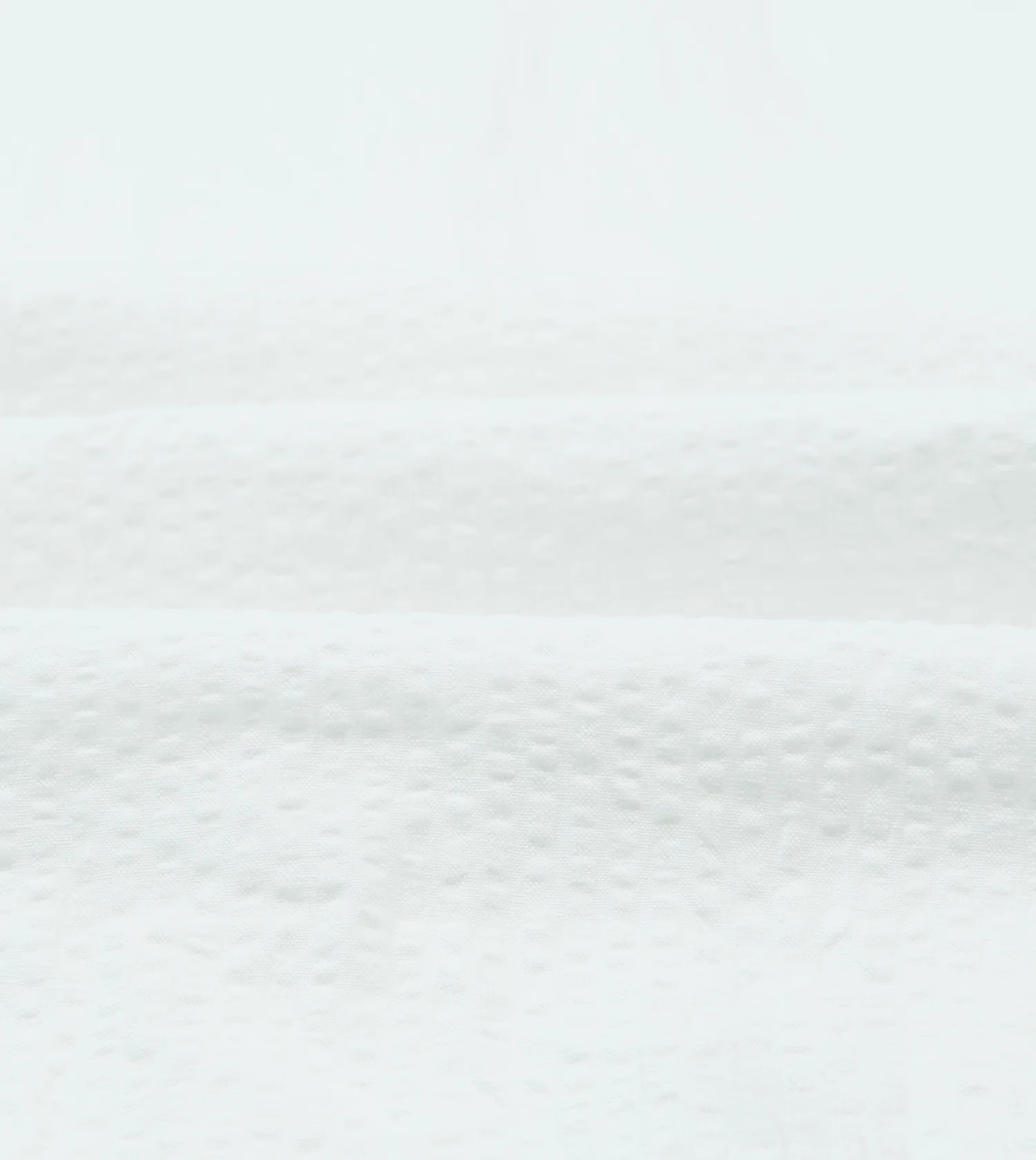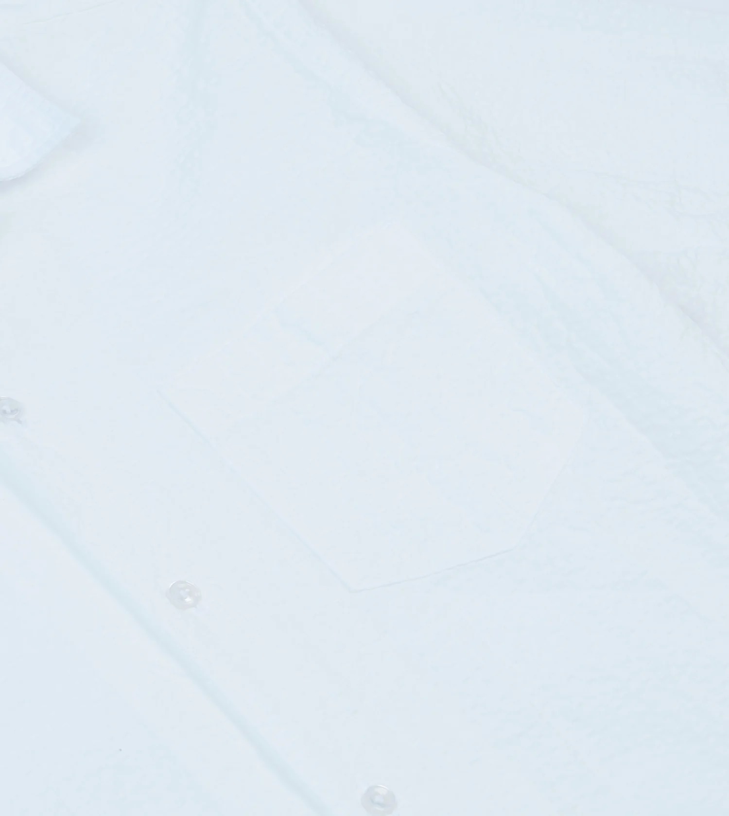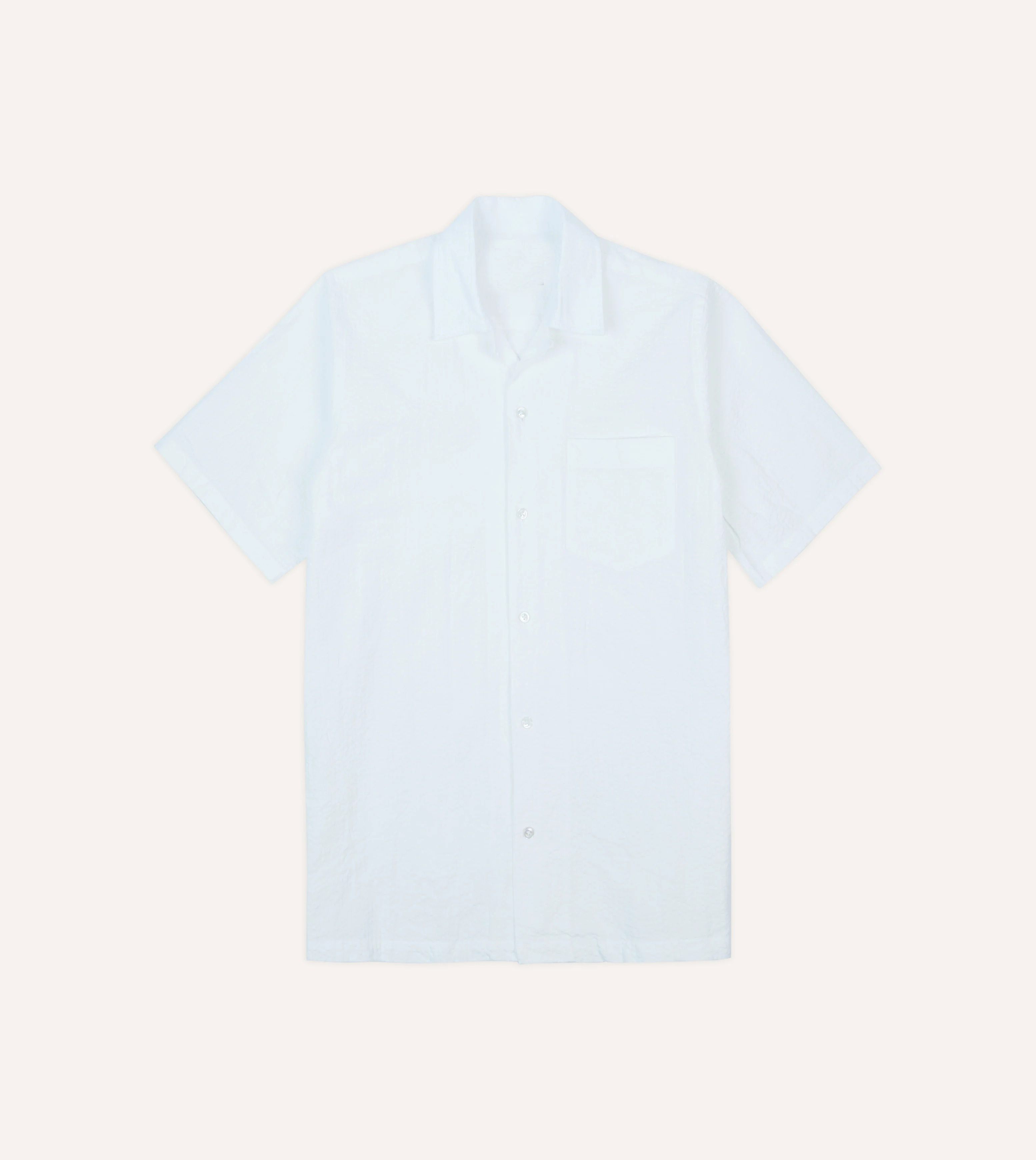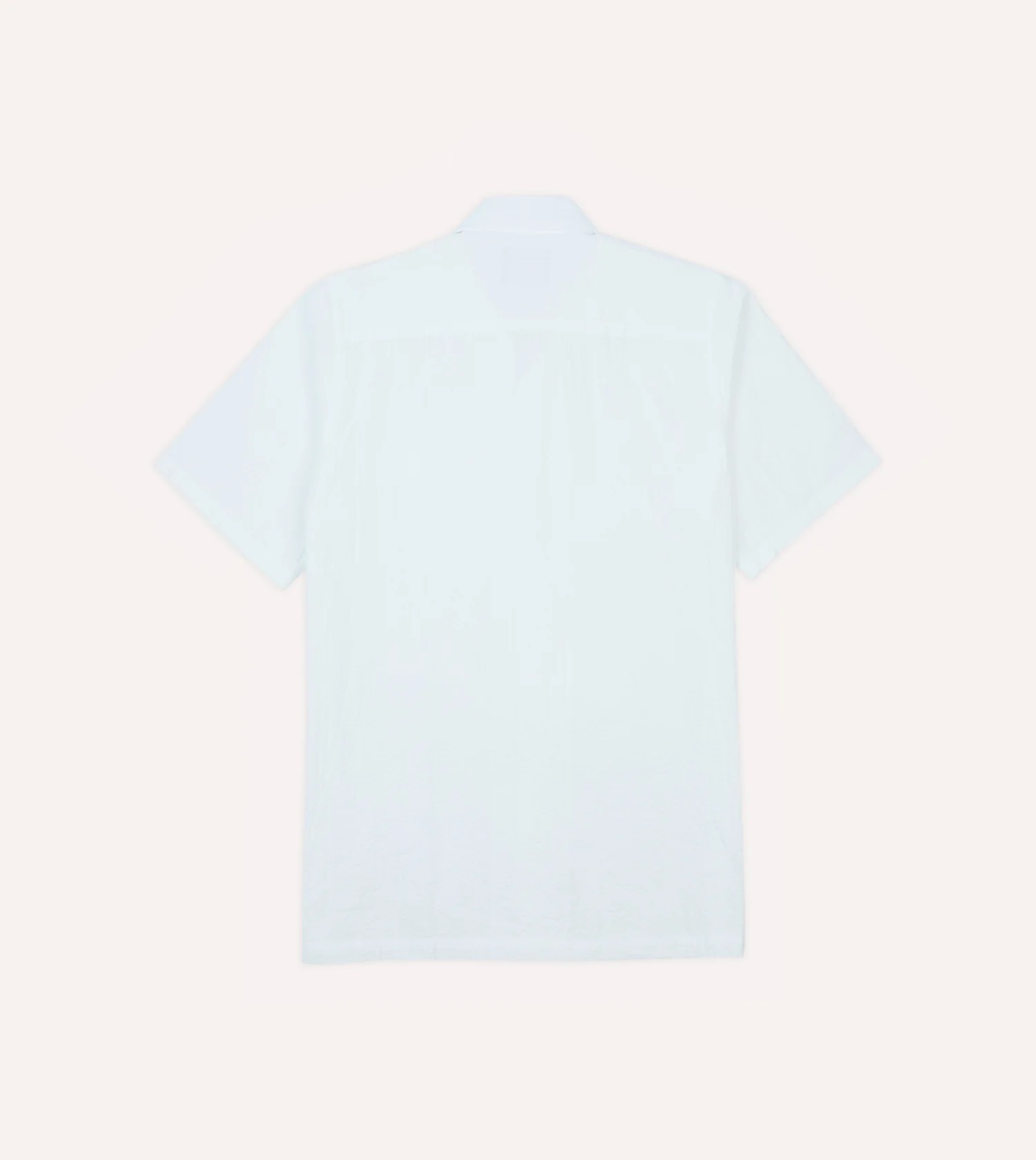 White Cotton-Linen Seersucker Camp Collar Short Sleeve Shirt Casual Style 55191151